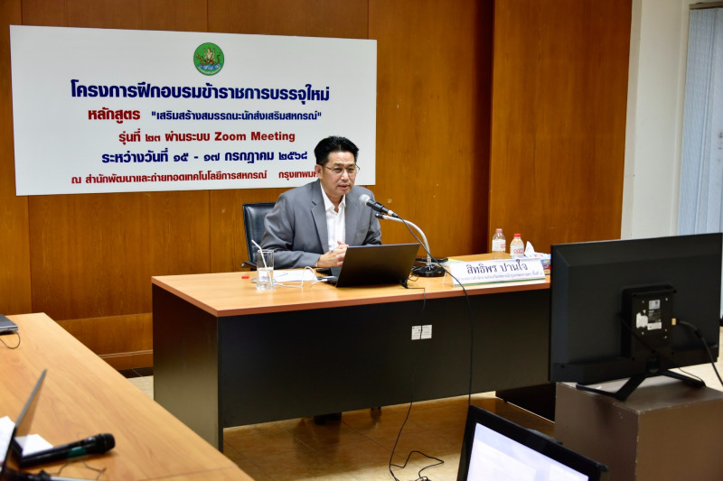 “ประสบการณ์และเทคนิคการส่งเสริมสหกรณ์” แก่ข้าราชการบรรจุใหม่ในโครงการฝึกอบรม หลักสูตร “เสริมสร้างสมรรถนะนักส่งเสริมสหกรณ์” (CPD 23) วันที่ 2 ผ่านระบบประชุมออนไลน์ Zoom Meeting เพื่อให้ผู้เข้าอบรมได้เรียนรู้แนวทางการส่งเสริมสหกรณ์ผ่านประสบการณ์จริงจากผู้ทรงคุณวุฒิ