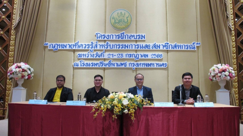 23 กรกฎาคม 2568 โครงการฝึกอบรม หลักสูตร “กฎหมายที่ควรรู้ สำหรับกรรมการและสมาชิกสหกรณ์” ในวันนี้เป็นกิจกรรม "สัมมนา ถาม – ตอบ ปัญหาการดำเนินงานสหกรณ์" เปิดโอกาสให้ผู้เข้าอมรมได้ซักถามประเด็นที่สงสัยเกี่ยวกับข้อกฎหมาย การบริหารธุรกิจสหกรณ์ หรือประเด็นอื่น ๆ จากที่ได้อบรมตลอดโครงการจากผู้ทรงคุณวุฒิ เพื่อสามารถนำความรู้และข้อเสนอแนะกลับไปพัฒนาและบริหารสหกรณ์ให้ประสบผลสำเร็จ ยังประโยชน์สู่สมาชิกสหกรณ์ได้อย่างยั่งยืน ณ โรงแรมปริ้นซ์ พาเลส เขตป้อมปราบศรัตรูพ่าย กรุงเทพมหานคร