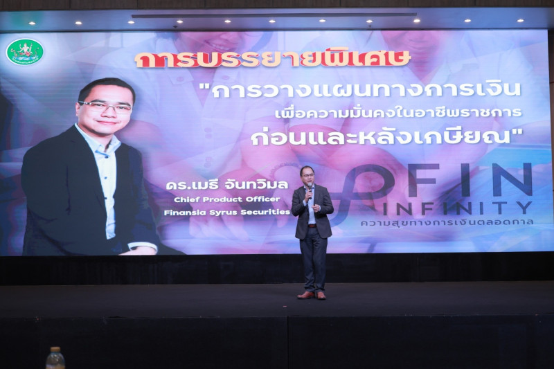 โดยในวันสุดท้ายนี้ ได้รับเกียรติจาก ดร.เมธี จันทวิมล Chief Product Officer Finansia Syrus Securities จาก บริษัท FIN INFINITY บรรยายเรื่อง "การวางแผนทางการเงิน เพื่อความมั่นคงในอาชีพราชการก่อนและหลังเกษียณ" ซึ่งเป็นหัวข้อที่ให้ความรู้เรื่องแนวทางการบริหารจัดการและสร้างความมั่นคงทางการเงิน เตรียมพร้อมสำหรับการเกษียณอายุราชการอย่างไร้ความกังวล