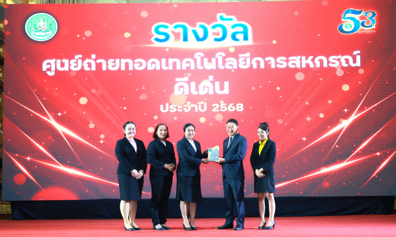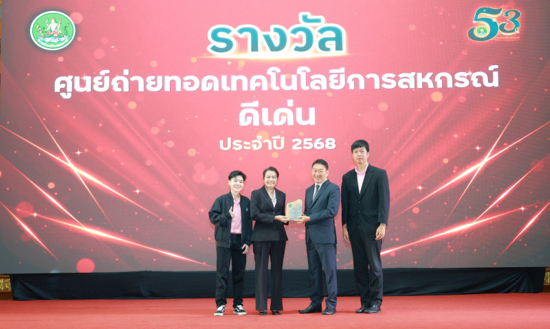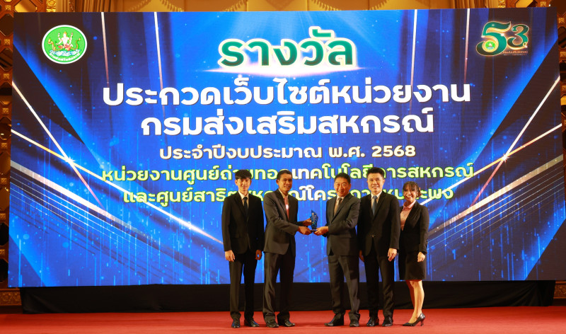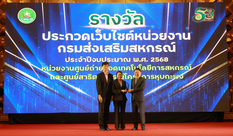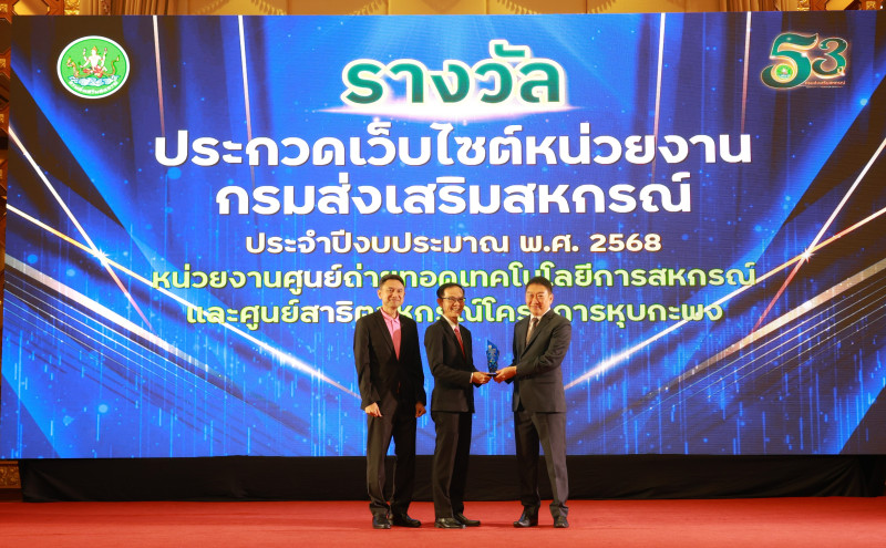 30 กันยายน 2568 นายพิษณุ พินรอด ผู้อำนวยการสำนักพัฒนาและถ่ายทอดเทคโนโลยีการสหกรณ์ นำครอบครัว สทส. เข้ารับมอบรางวัลจาก นายวิศิษฐ์ ศรีสุวรรณ์ อธิบดีกรมส่งเสริมสหกรณ์ ภายในงานวันคล้ายวันสถาปนากรมส่งเสริมสหกรณ์ ครบรอบ 53 ปี ณ โรงแรมปรินซ์ พาเลส เขตป้อมปราบศัตรูพ่าย กรุงเทพมหานคร โดยรางวัลที่ครอบครัว สทส. ได้รับประกอบไปด้วย รางวัลหน่วยงานเสริมสร้างสมดุลชีวิตคนทำงาน ระดับกรม ประจำปี 2568 รางวัลการประกวดเว็บไซต์หน่วยงานกรมส่งเสริมสหกรณ์ ประจำปี 2568 รางวัลศูนย์ถ่ายทอดเทคโนโลยีการสหกรณ์ดีเด่น ประจำปี 2568 และรางวัลพนักงานราชการดีเด่น ประจำปี 2568