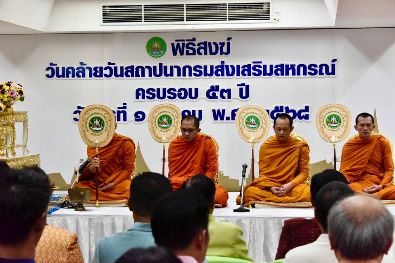 อธิบดีกรมส่งเสริมสหกรณ์ นำผู้เข้าร่วมพิธีถวายภัตตาหารแด่พระภิกษุสงฆ์ และสักการะสิ่งศักดิ์สิทธิ์ประจำกรมส่งเสริมสหกรณ์เพื่อความเป็นสิริมงคลในวาระโอกาสครบรอบแห่งวันคล้ายวันสถาปนา และเป็นการเริ่มต้นปีงบประมาณใหม่อย่างราบรื่น จากนั้นเป็นประธานในพิธีรับพระราชทานเครื่องราชอิสริยาภรณ์สำหรับบุคลากรกรมส่งเสริมสหกรณ์ เสร็จแล้วอ่านสารรัฐมนตรีว่าการกระทรวงเกษตรและสหกรณ์ ร้อยเอก ธรรมนัส พรหมเผ่า เนื่องในโอกาสวันคล้ายวันสถาปนากรมส่งเสริมสหกรณ์ ครบรอบ 53 ปี เป็นอันเสร็จพิธี