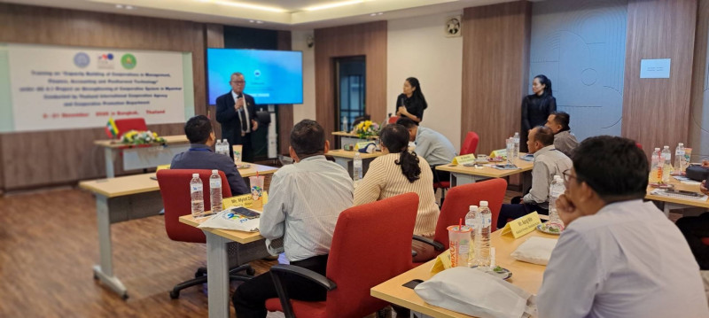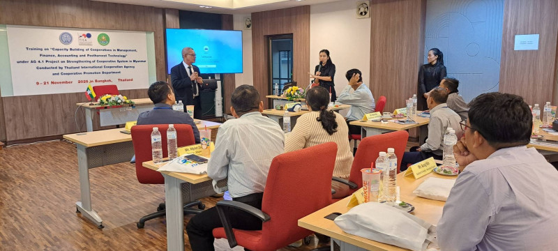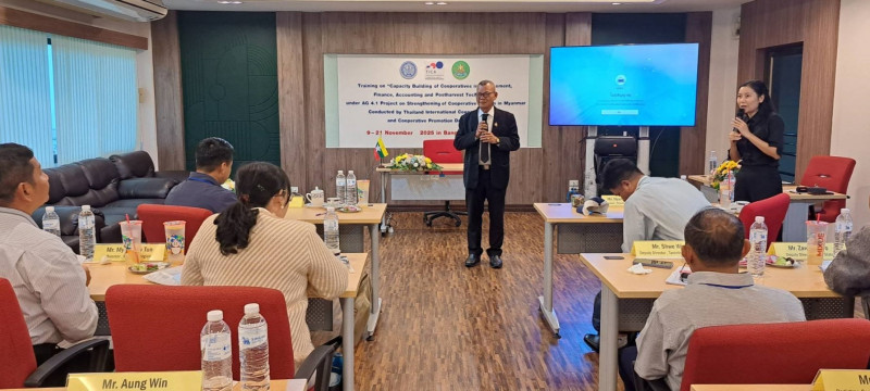 11 พฤศจิกายน 2568 นายประวัติ แดงบรรจง รองอธิบดีกรมส่งเสริมสหกรณ์ ให้การต้อนรับ Mr. Aung Thura อธิบดีกรมสหกรณ์ สาธารณรัฐแห่งสหภาพเมียนมา และคณะ ในโอกาสเข้าร่วมโครงการฝึกอบรม หลักสูตร “การพัฒนาศักยภาพสหกรณ์ด้วยการจัดการ ด้านการเงิน การบัญชี และเทคโนโลยีหลังการเก็บเกี่ยว” ภายใต้โครงการเสริมสร้างความเข้มแข็งแก่ระบบสหกรณ์ในเมียนมา โดยมี นายอนุรัตน์ เลื่อนลอย ผู้ตรวจราชการกรม เขตตรวจราชการที่ 8 และ 9 พร้อมด้วย นายพิษณุ พินรอด ผู้อำนวยการสำนักพัฒนาและถ่ายทอดเทคโนโลยีการสหกรณ์ ร่วมให้การต้อนรับ ณ ห้องรับรอง ชั้น 2 อาคารฝึกอบรมส่วนกลาง สำนักพัฒนาและถ่ายทอดเทคโนโลยีการสหกรณ์ เขตดุสิต กรุงเทพมหานคร