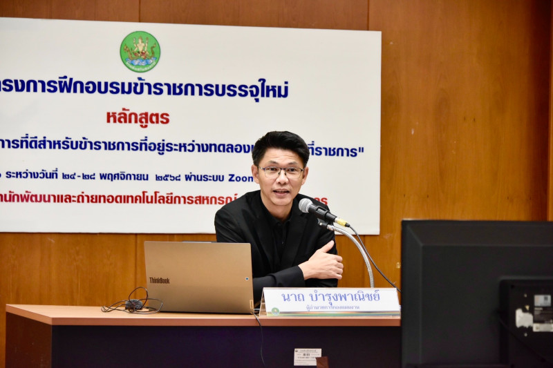 27 พฤศจิกายน 2568 นายนาถ บำรุงพาณิชย์ ผู้อำนวยการกองแผนงาน ให้เกียรติเป็นวิทยากรบรรยาย หัวข้อ “ยุทธศาสตร์ชาติและนโยบาย การวิเคราะห์งบประมาณ การติดตามและประเมินผล” แก่ผู้เข้าอบรมโครงการฝึกอบรมข้าราชการบรรจุใหม่ที่อยู่ระหว่างทดลองปฏิบัติหน้าที่ราชการ รุ่นที่ 26 (New Gen 26) วันที่ 4 ประกอบไปด้วยเนื้อหาสำคัญเกี่ยวกับ ยุทธศาสตร์ชาติ 20 ปี งบประมาณมุ่งผลสัมฤทธิ์ การจัดทำแผนปฏิบัติงาน แผนโครงการ ขั้นตอนการติดตามประเมินผล และความสอดคล้องกับแผนต่าง ๆ ที่เชื่อมโยงสู่การทำงาน