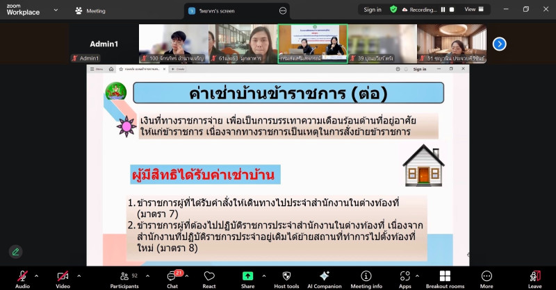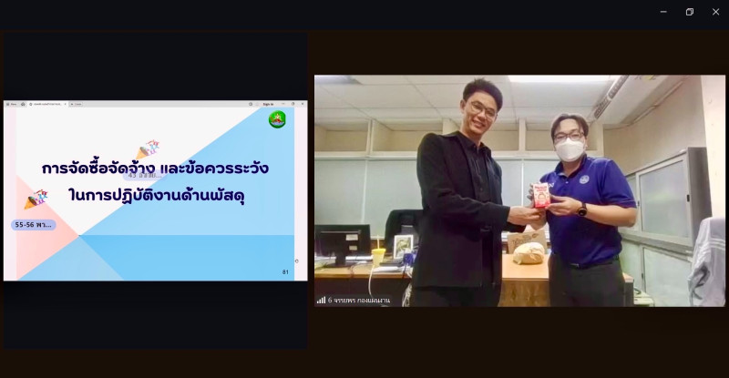 ช่วงบ่าย นางสาวโสภิดา ศรัทธารัตน์ ผู้อำนวยการกองคลัง นางสาววิภัสรา รถทอง ผู้อำนวยการกลุ่มบัญชีและงบประมาณ พร้อมด้วย นางสาวจุฑาพร จุฑาเทพ นักวิชาการพัสดุชำนาญการ บรยายหัวข้อ “งานพัสดุ การเงิน การคลังสำหรับการปฏิบัติงาน” อาทิ ระเบียบเกี่ยวกับการพัสดุ การเงินและการคลัง ขั้นตอนการจัดซื้อจัดจ้าง และข้อควรระวังในการปฏิบัติงานพัสดุ เพื่อให้ผู้เข้าอบรมสามารถปฏิบัติงานด้านพัสดุ รวมถึงทำหน้าที่เป็นคณะกรรมการต่าง ๆ ตามระเบียบพัสดุได้อย่างถูกต้องตามกฎหมาย