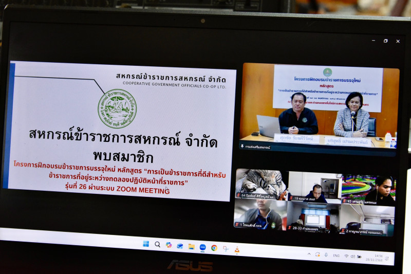 28 พฤศจิกายน 2568 นางบริสุทธิ์ เปรมประพันธ์ ที่ปรึกษาอนุกรรมการศึกษาสหกรณ์ข้าราชการสหกรณ์ จำกัด และนายสุวิช น้อยอิ่ม กรรมการดำเนินการ สหกรณ์ข้าราชการสหกรณ์ จำกัด ให้เกียรติร่วมถ่ายทอดประสบการณ์ และความรู้เกี่ยวกับสิทธิประโยชน์ของการเป็นสมาชิกสหกรณ์ แก่ผู้เข้าอบรมโครงการฝึกอบรมข้าราชการบรรจุใหม่ที่อยู่ระหว่างทดลองปฏิบัติหน้าที่ราชการ รุ่นที่ 26 (New Gen 26) วันที่ 5 ผ่านระบบประชุมทางไกลออนไลน์ Zoom Meeting ณ ห้องประชุม พ. 201 ชั้น 2 อาคารกรมหมื่นพิทยาลงกรณ์ สำนักพัฒนาและถ่ายทอดเทคโนโลยีการสหกรณ์ เขตดุสิต กรุงเทพมหานคร