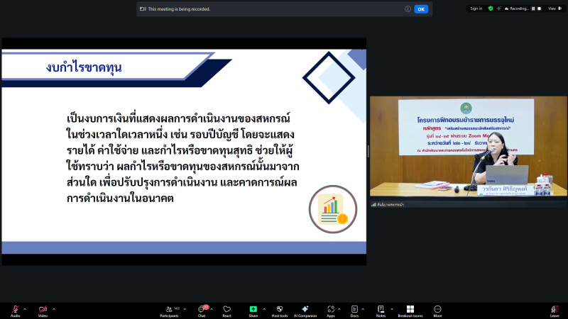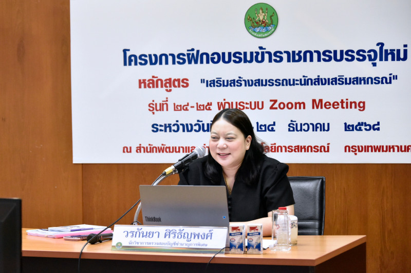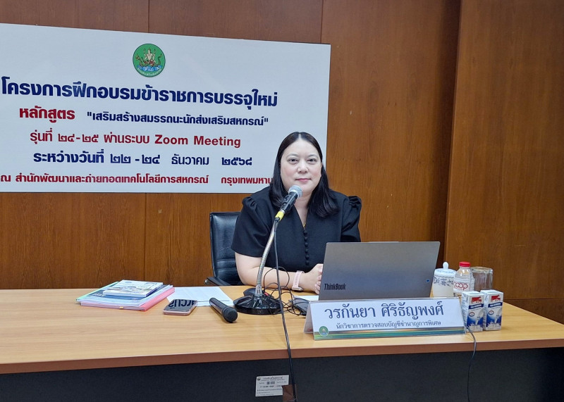 วันที่ 23 ธันวาคม 2568 นางสาววรกันยา ศิริธัญพงศ์ นักวิชาการตรวจสอบบัญชีชำนาญการพิเศษ กรมตรวจบัญชีสหกรณ์ ให้เกียรติเป็นวิทยากรบรรยายแก่ผู้เข้ารับการฝึกอบรมข้าราชการบรรจุใหม่ หลักสูตร “เสริมสร้างสมรรถนะนักส่งเสริมสหกรณ์” รุ่นที่ 24 – 25 (ระยะที่ 1) วันที่ 2 ผ่านระบบประชุมทางไกลออนไลน์ Zoom Meeting ณ ห้องประชุม พ. 201 ชั้น 2 อาคารกรมหมื่นพิทยาลงกรณ์ สำนักพัฒนาและถ่ายทอดเทคโนโลยีการสหกรณ์ เขตดุสิต กรุงเทพมหานคร