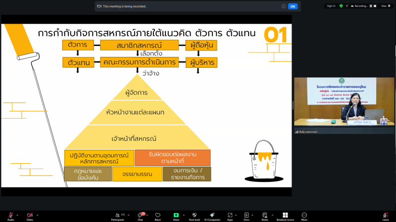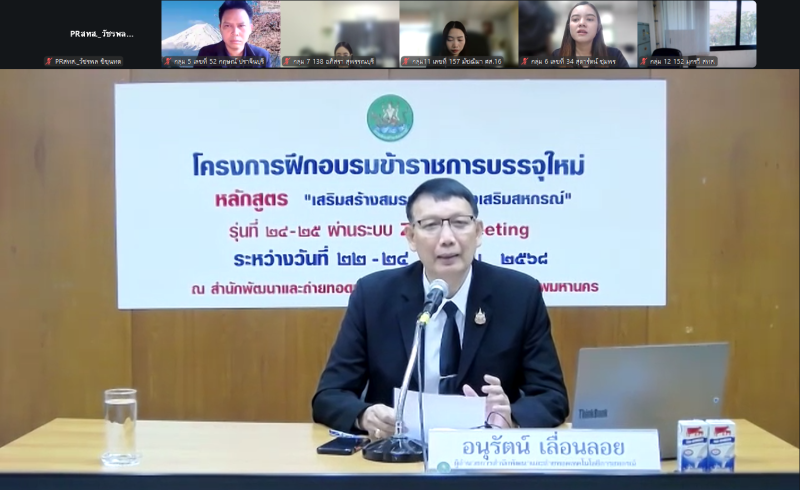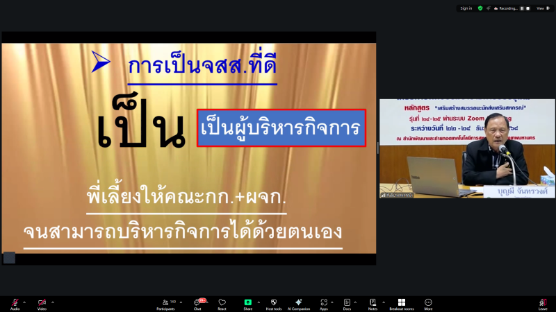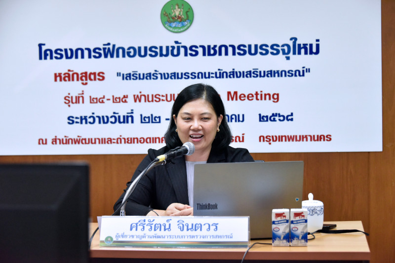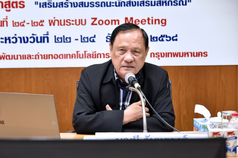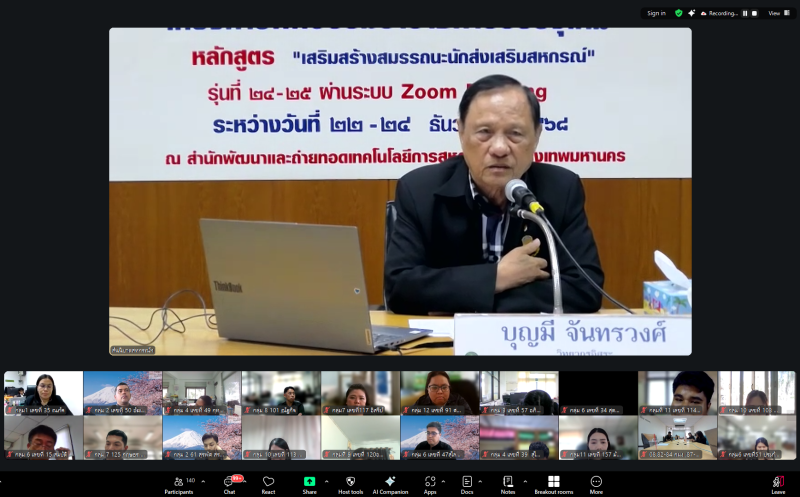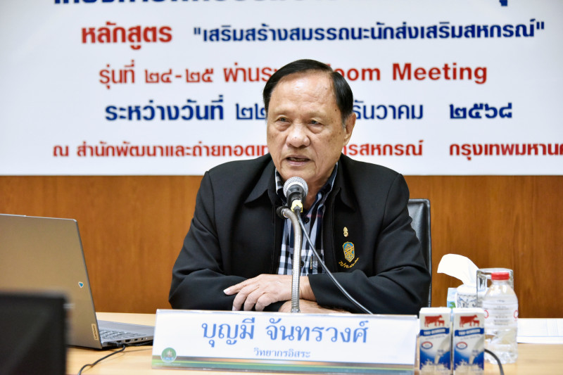 วันที่ 24 ธันวาคม 2568 นายบุญมี จันทรวงศ์ อดีตอธิบดีกรมส่งเสริมสหกรณ์ ให้เกียรติบรรยาย หัวข้อ “ประสบการณ์และแนวทางการแก้ไขข้อบกพร่อง เพื่อสร้างความเข้มแข็งให้สหกรณ์” เพื่อถ่ายทอดประสบการณ์การทำงาน และสร้างพื้นฐานความรู้เกี่ยวกับงานด้านการส่งเสริมสหกรณ์ แก่ข้าราชการบรรจุใหม่ในโครงการฝึกอบรม หลักสูตร “เสริมสร้างสมรรถนะนักส่งเสริมสหกรณ์” รุ่นที่ 24 – 25 ระยะที่ 1 ผ่านระบบประชุมทางไกลออนไลน์ Zoom Meeting ณ ห้องประชุม พ. 201 ชั้น 2 อาคารกรมหมื่นพิทยาลงกรณ์ สำนักพัฒนาและถ่ายทอดเทคโนโลยีการสหกรณ์ เขตดุสิต กรุงเทพมหานคร