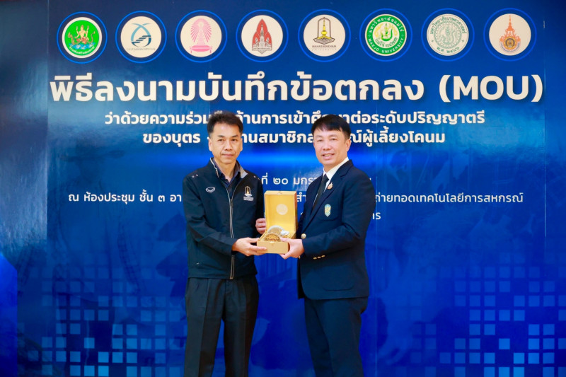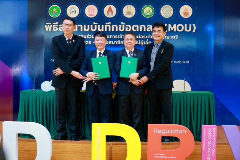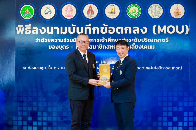 วันที่ 20 มกราคม 2569 นายนิรันดร์ มูลธิดา อธิบดีกรมส่งเสริมสหกรณ์ เป็นประธานในพิธีลงนามบันทึกข้อตกลง (MOU) ว่าด้วยความร่วมมือด้านการเข้าศึกษาต่อระดับปริญญาตรีของบุตร - หลานสมาชิกสหกรณ์ผู้เลี้ยงโคนม ระหว่างกรมส่งเสริมสหกรณ์ และมหาวิทยาลัยชั้นนำ 6 แห่ง ในการนี้ นายณฤทธิ์ บุญชัย รองอธิบดีกรมส่งเสริมสหกรณ์ นางสาวปรานอม จันทร์ใหม่ ผู้เชี่ยวชาญ รักษาการในตำแหน่งผู้ทรงคุณวุฒิด้านการสหกรณ์ นายอนุรัตน์ เลื่อนลอย ผู้อำนวยการสำนักพัฒนาและถ่ายทอดเทคโนโลยีการสหกรณ์ คณะผู้บริหารกรมส่งเสริมสหกรณ์ คณะผู้บริหารมหาวิทยาลัยทั้ง 6 แห่ง และผู้มีเกียรติเข้าร่วมในพิธี ณ ห้องประชุม ฝ. 301 ชั้น 3 อาคารฝึกอบรมส่วนกลาง สำนักพัฒนาและถ่ายทอดเทคโนโลยีการสหกรณ์ เขตดุสิต กรุงเทพมหานคร
