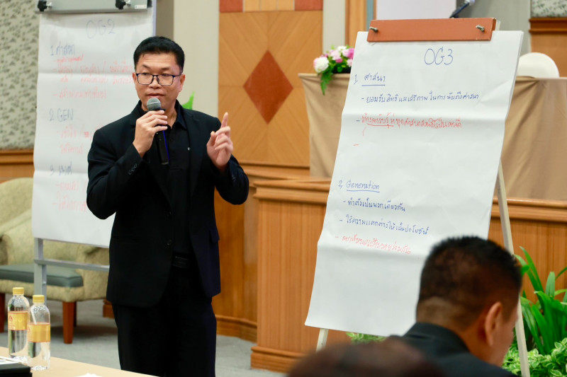 ในการอบรมช่วงเช้า ดร.สุชาติ สังข์เกษม อาจารย์ผู้ทรงคุณวุฒิประจำ มหาวิทยาลัยธรรมศาสตร์ เป็นวิทยากรบรรยายในหัวข้อ “การบริหารความแตกต่าง” เพื่อเสริมสร้างให้ผู้ปฏิบัติหน้าที่รองนายทะเบียนสหกรณ์สามารถบริหารจัดการความแตกต่าง ทั้งในด้านความคิด รูปแบบการทำงาน และความหลากหลายของสหกรณ์ในแต่ละพื้นที่ ซึ่งถือเป็นทักษะสำคัญที่จะช่วยให้การกำกับดูแลและพัฒนาสหกรณ์เป็นไปอย่างมีประสิทธิภาพและยั่งยืนตามวัตถุประสงค์ของโครงการ