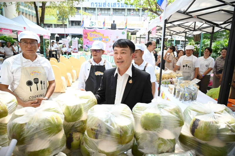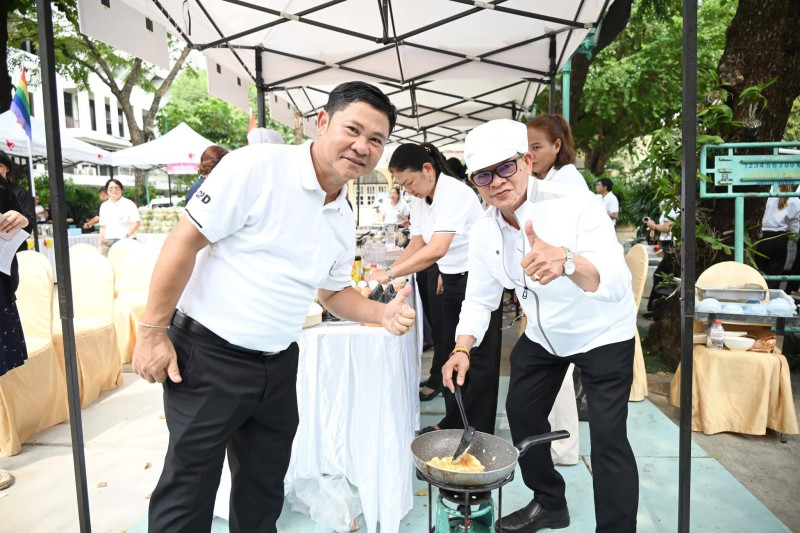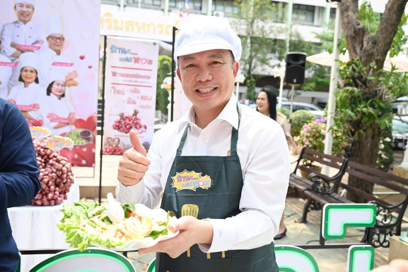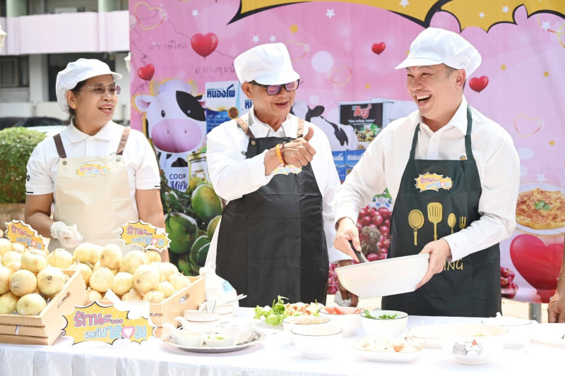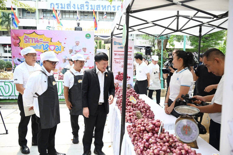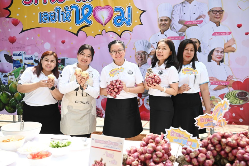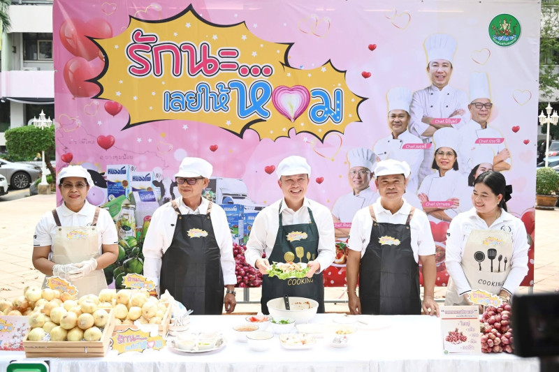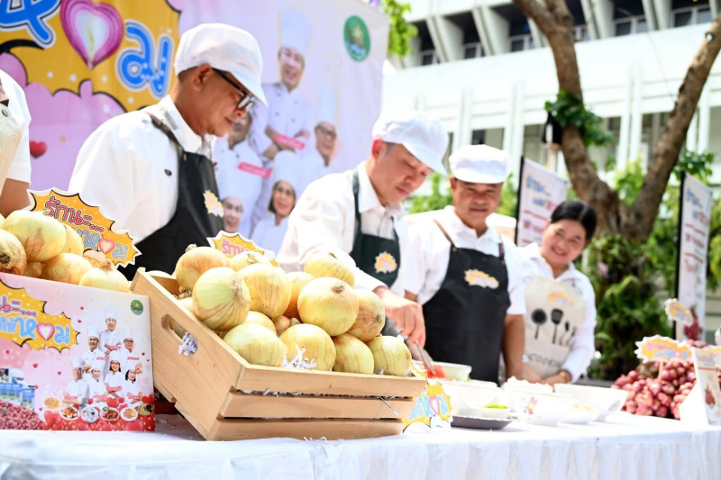 โอกาสนี้ อธิบดีกรมส่งเสริมสหกรณ์ ได้ร่วมสาธิตการทำเมนู “ยำรวมมิตรพิชิตใจ” โดยใช้หอมหัวใหญ่เป็นวัตถุดิบหลักเพื่อเพิ่มความหวานและให้เนื้อสัมผัสที่กรอบสด จึงช่วยให้เมนูนี้มีรสชาติกลมกล่อมและน่ารับประทานมากยิ่งขึ้น ส่วนคณะผู้บริหารกรมส่งเสริมสหกรณ์ ได้ร่วมกันรังสรรค์เมนูสุดพิเศษ อาทิ ข้าวไข่เจียวมัดใจ ยำปลากระป๋องสื่อรัก ไข่ลูกเขยหวานใจ ข้าวขยำรวมใจ ต้มข่าไก่ละมุนใจ และมะม่วงน้ำปลาหวานสะท้านรัก โดยใช้หอมแดงเป็นวัตถุดิบในการประกอบอาหาร