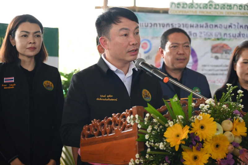 อธิบดีกรมส่งเสริมสหกรณ์ กล่าวเพิ่มเติมว่า การจัดงานในครั้งนี้มีวัตถุประสงค์เพื่อประชาสัมพันธ์ และกระจายผลผลิตหอมหัวใหญ่คุณภาพออกนอกแหล่งผลิตผ่านขบวนการสหกรณ์ ลดปัญหาผลผลิตกระจุกตัว โดยได้รวบรวมการกระจายผลผลิตผ่านสำนักงานสหกรณ์จังหวัดและขบวนการสหกรณ์ ไปยังพื้นที่นอกเขตจังหวัดเชียงใหม่ จำนวน 56 จังหวัด ทั่วภูมิภาคของประเทศแล้วกว่า 502 ตัน โดยสหกรณ์ได้รับซื้อจากเกษตรกรสมาชิกในราคานำตลาด 8 บาท/กิโลกรัม จำนวน 50 ตัน โดยมีสหกรณ์ผู้ปลูกหอมหัวใหญ่ต้นทางในพื้นที่ 4 สหกรณ์ ได้แก่ สหกรณ์ผู้ปลูกหอมหัวใหญ่ฝาง จำกัด สหกรณ์ผู้ปลูกหอมหัวใหญ่บ้านกาดพัฒนา จำกัด สหกรณ์ผู้ปลูกหอมหัวใหญ่แม่วาง จำกัด และสหกรณ์ผู้ปลูกหอมหัวใหญ่พร้าว จำกัด
