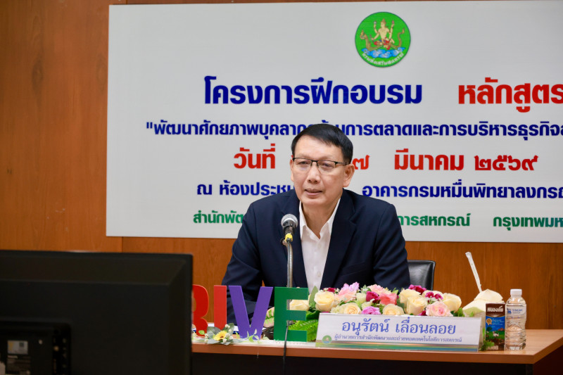 วันที่ 26 มีนาคม 2569 นายอนุรัตน์ เลื่อนลอย ผู้อำนวยการสำนักพัฒนาและถ่ายทอดเทคโนโลยีการสหกรณ์ เป็นประธานเปิดโครงการฝึกอบรม หลักสูตร “พัฒนาศักยภาพบุคลากรด้านการตลาดและการบริหารธุรกิจสหกรณ์” โดยมี นางสาวจิราภรณ์ คำบาง ผู้อำนวยการกลุ่มพัฒนาบุคลากรสหกรณ์ และเจ้าหน้าที่ที่เกี่ยวข้อง ร่วมในพิธี ผ่านระบบประชุมทางไกลออนไลน์ Zoom Meeting ณ ห้องประชุม พ. 201 ชั้น 2 อาคารกรมหมื่นพิทยาลงกรณ์ สำนักพัฒนาและถ่ายทอดเทคโนโลยีการสหกรณ์ เขตดุสิต กรุงเทพมหานคร